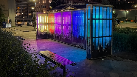 該裝置坐落在大學公園內,將技術、藝術和建築融合成一種充滿活力和有趣的體驗。Ethera戶外藝術裝置由半透明的聚碳酸酯板製成,裝置內部充滿了裝飾性骨料,營造出一種觸感和紋理的表面,在不斷變化的光線條件下變得栩栩如生。