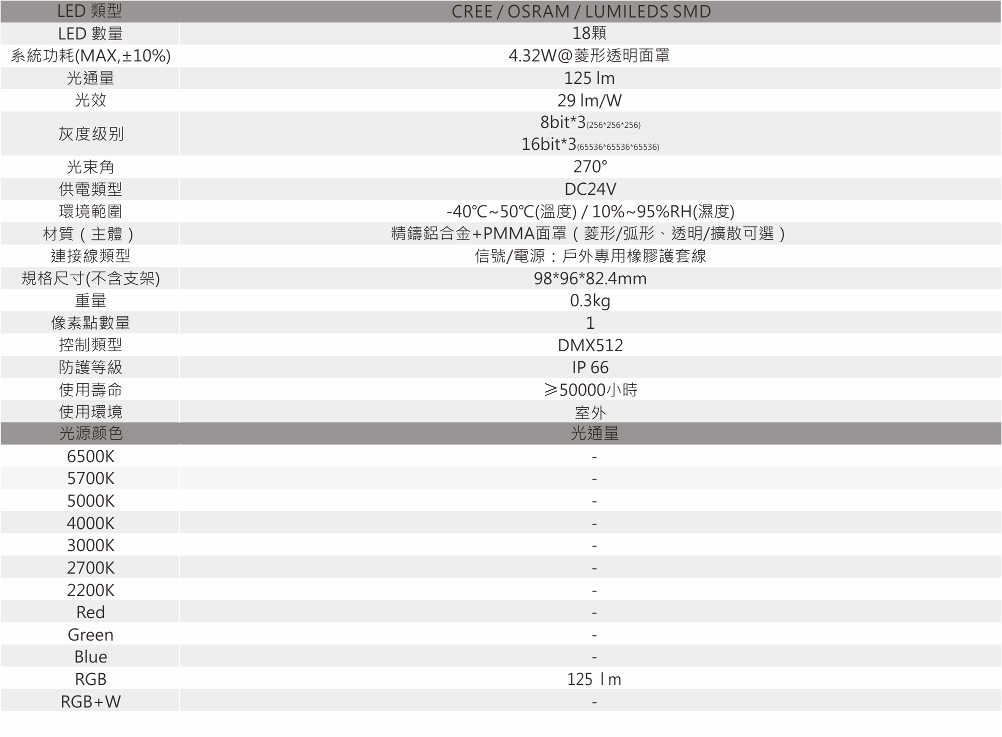 小尺寸超高亮度的單像素LED燈,適合於組成像素密度較低的LED像素燈陣列,通常用於與建築玻璃幕牆的桁架結構相結合,顯示圖案色彩變化效果。
