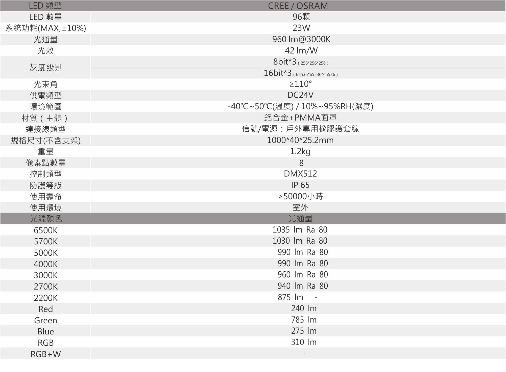 條形LED燈具,適合超大型樓宇外立面的動畫、圖文、視頻的顯示以及立面的動態廣告展現;亦可使用於建築樓宇的輪廓勾邊。
