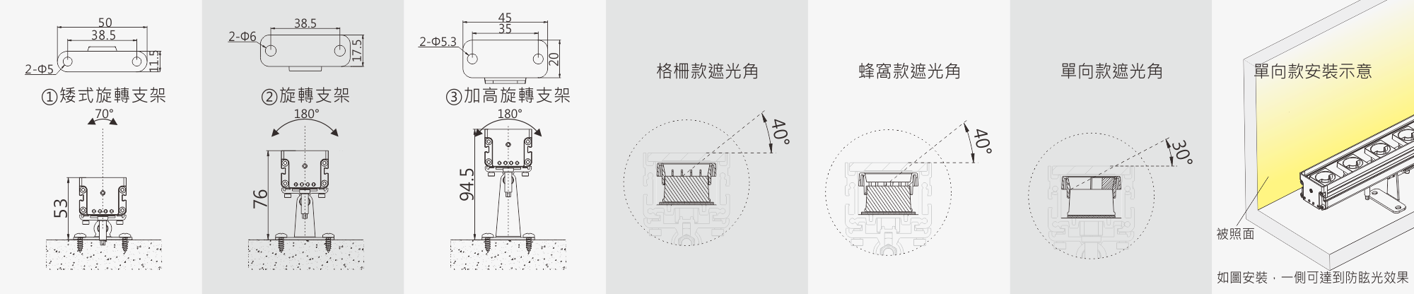 根據客戶需求可選擇:格柵款、單向款,蜂窩款等防眩光配件。