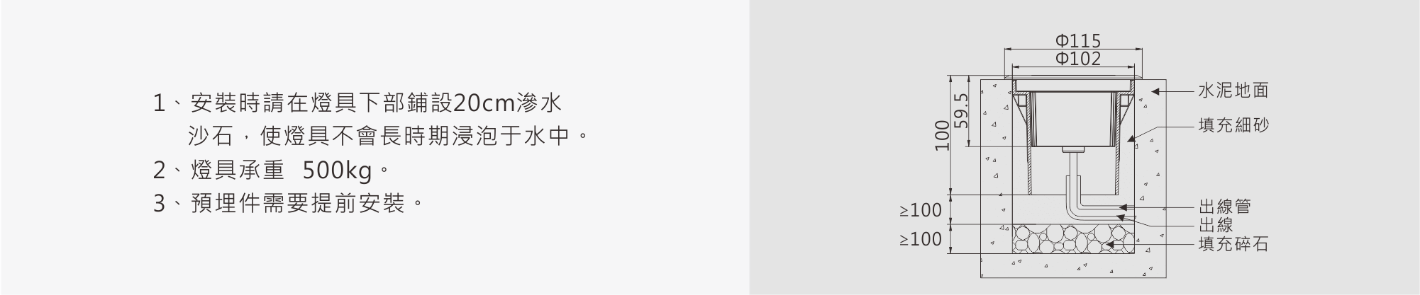 圓形中尺寸地埋燈具,適合於公園廣場、街道景觀照明。
