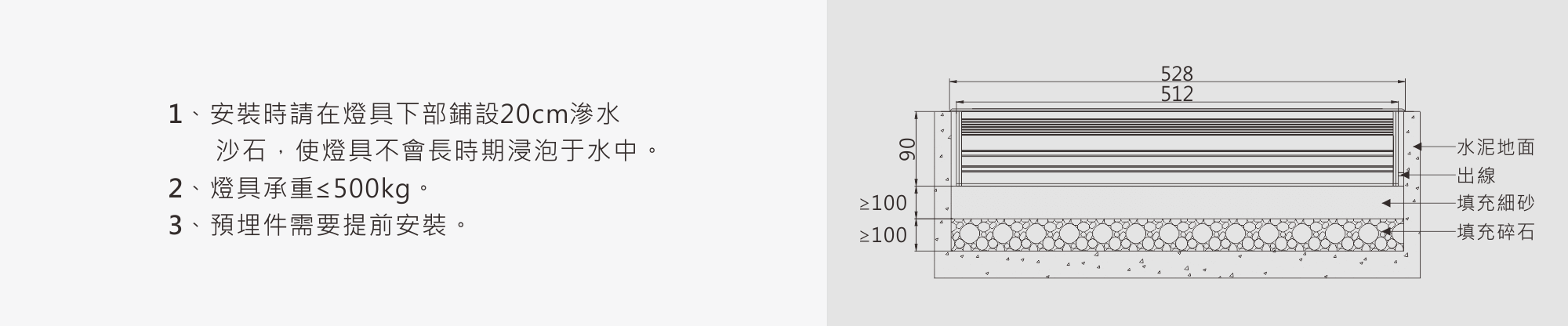 長條地埋燈具,適合於公園廣場、街道景觀照明。