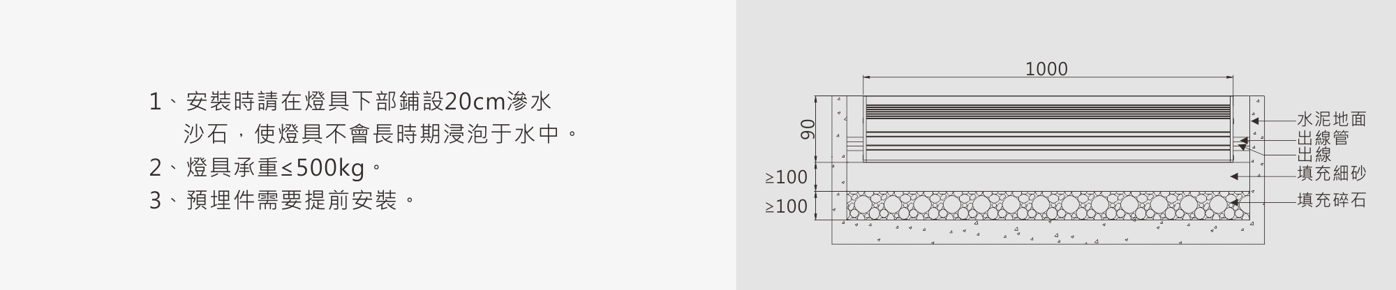 長條地埋燈具,適合於公園廣場、街道景觀照明。