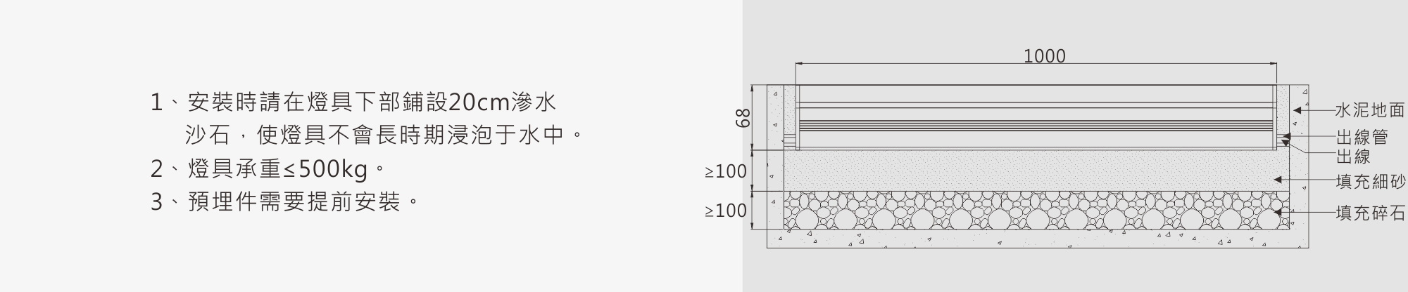 長條地埋燈具,適合於公園廣場、街道景觀照明。
