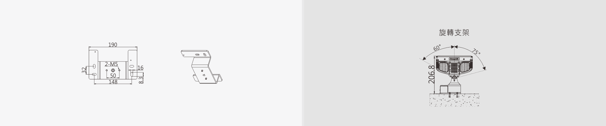 可旋轉式安裝底座可在垂直方向旋轉180°。