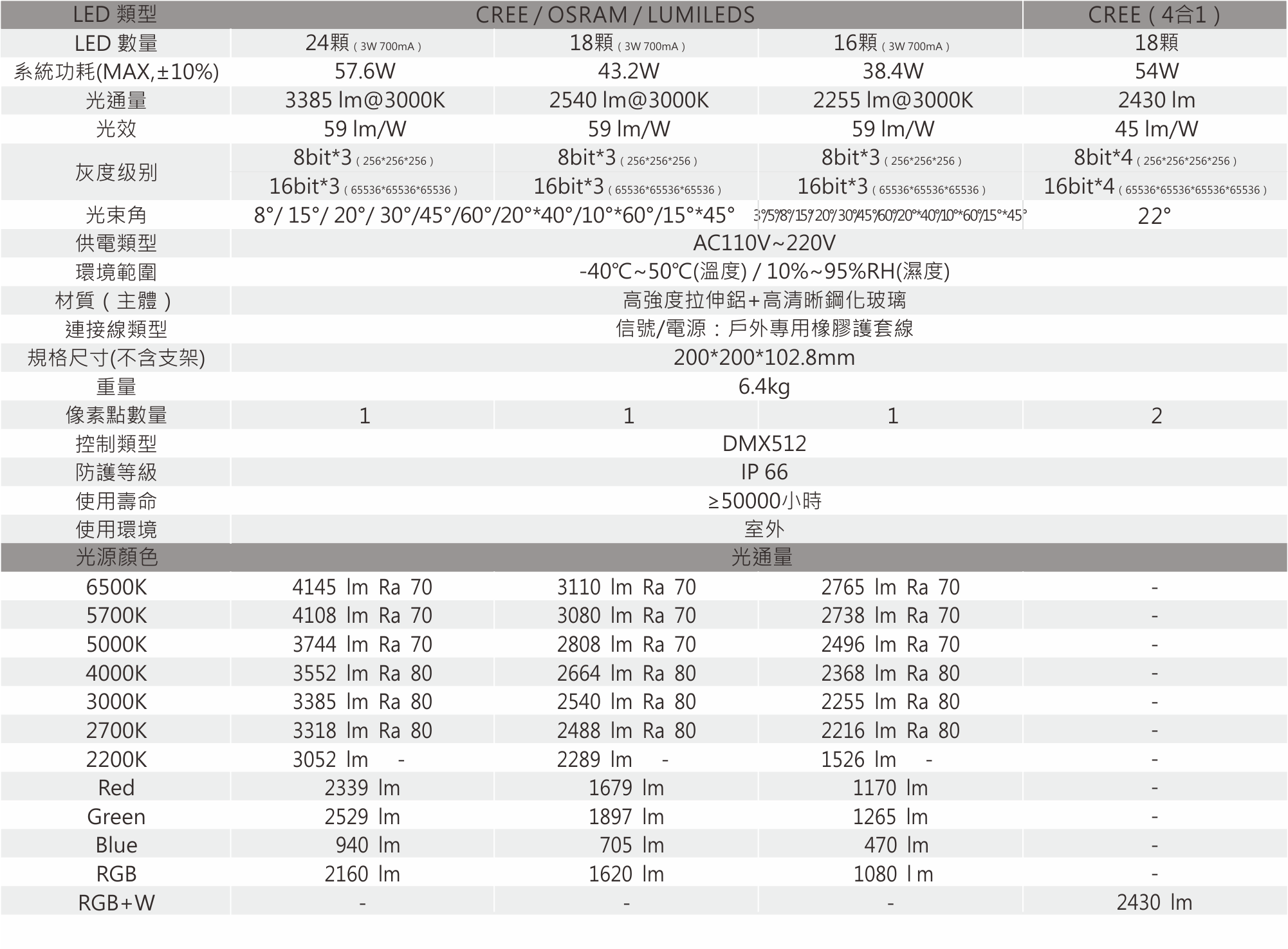 適應不同的亮度要求,多種顏色及角度可供選擇。