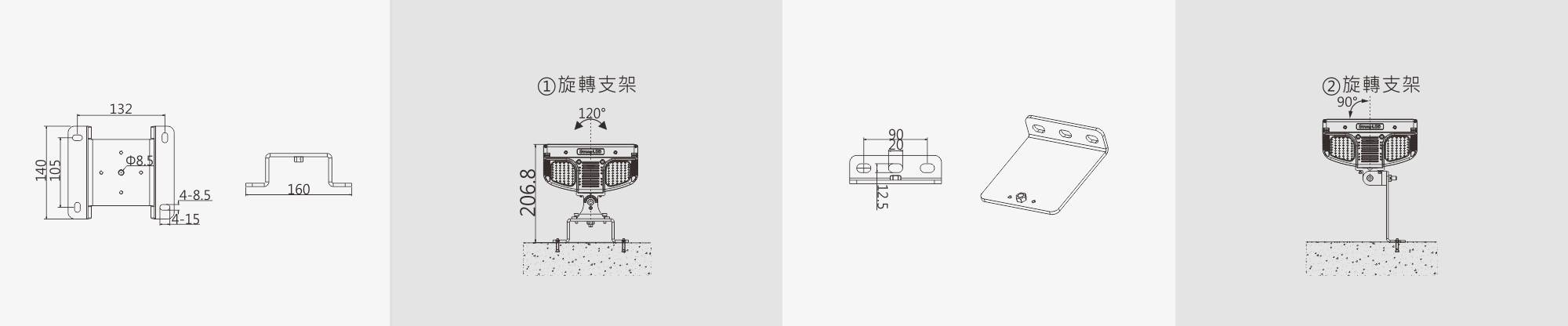 可旋轉式安裝底座可在垂直方向旋轉120°,方便調整投射角度。