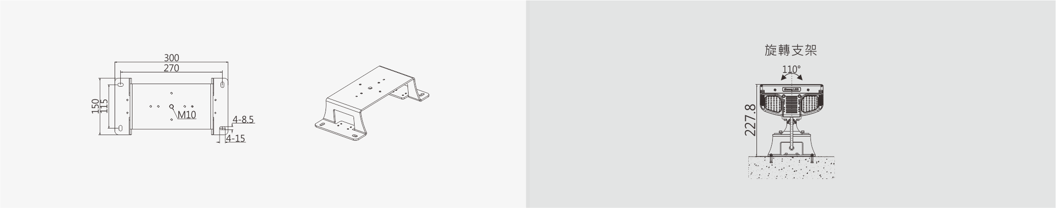 可旋轉式安裝底座可在垂直方向旋轉180°。