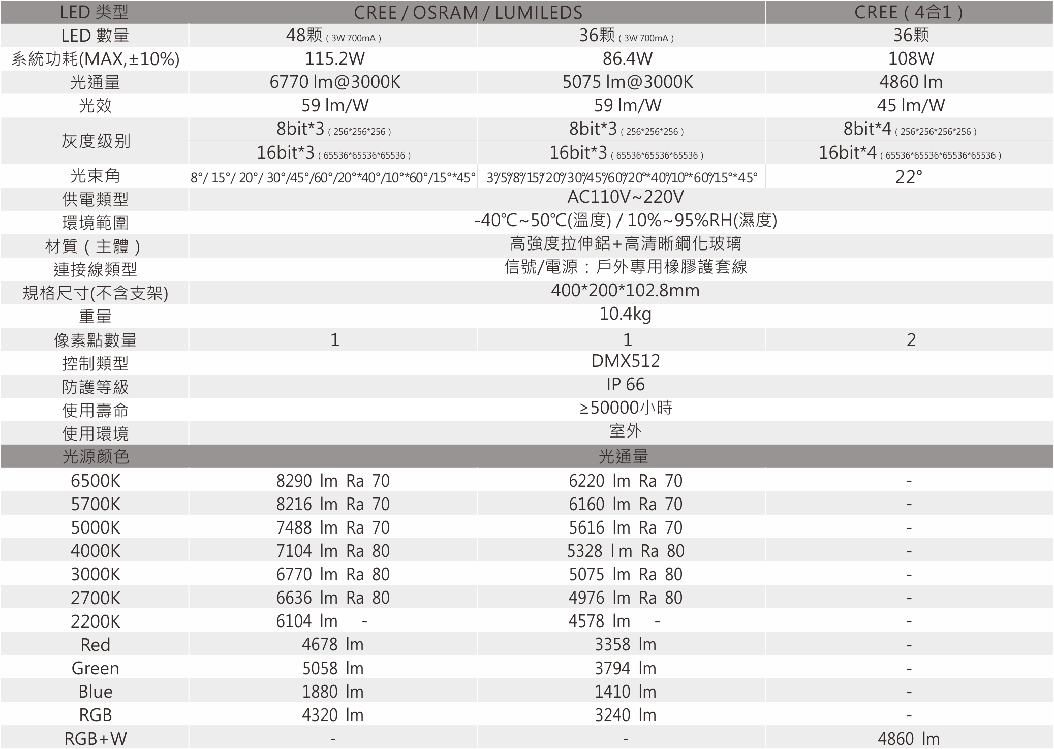 適應不同的亮度要求,多種顏色及角度可供選擇。