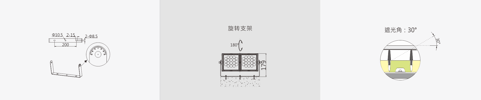 • 蜂巢式防眩光設計。防眩光角度達到30°,多種發光角度可選擇。