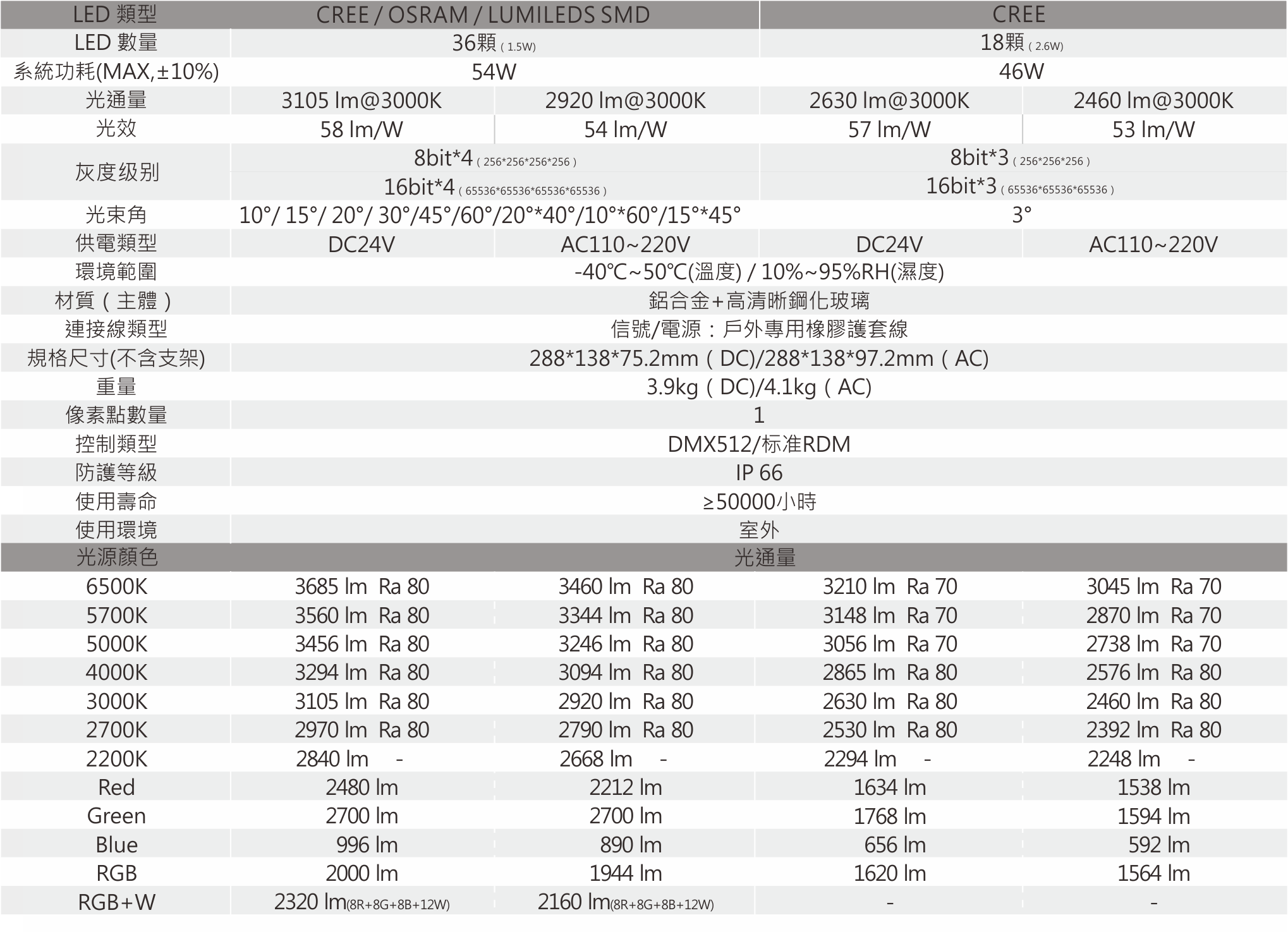 • RGBW高功率投光燈,適合室外高檔、高要求樓宇、公園景觀、古建築泛光照明使用,良好的混光效果。