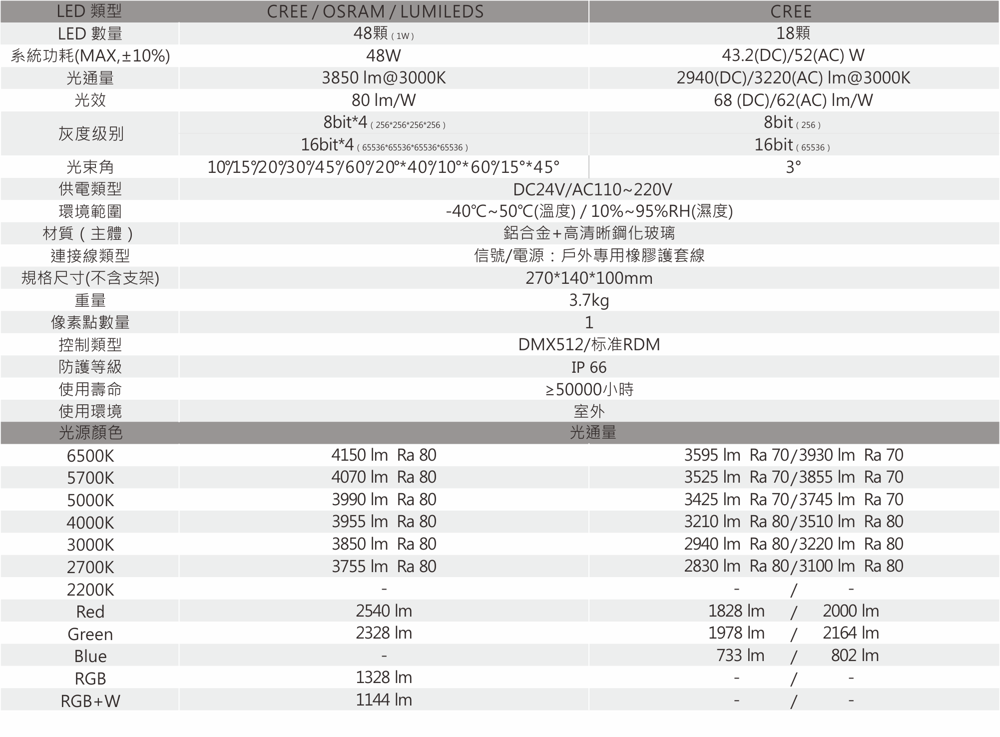RGBW高功率投光燈,適合室外高檔、高要求樓宇、公園景觀、古建築泛光照明使用,良好的混光效果。