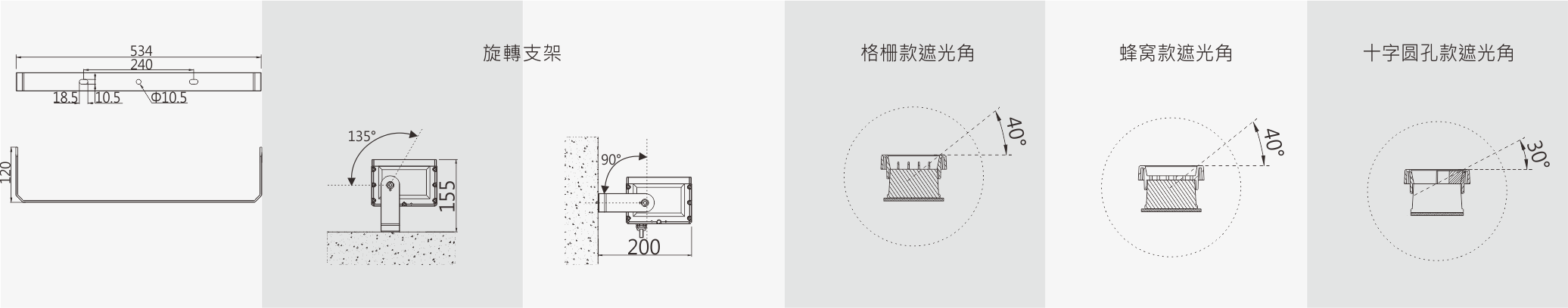 依客戶需求可選擇:(36燈)玻璃絲印;(96燈)格柵款、十字圓孔款、圓孔款、蜂巢款防眩光配件。