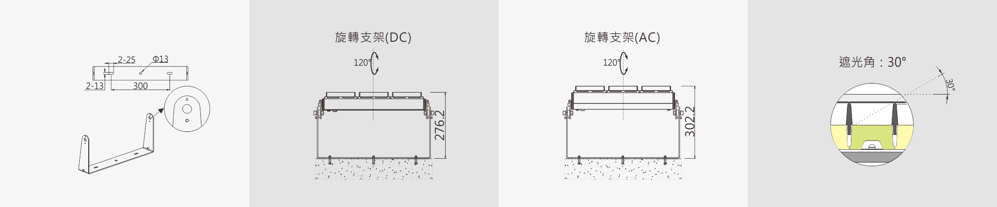 蜂巢式防眩光設計。防眩光角度達到30°,多種發光角度可選擇。