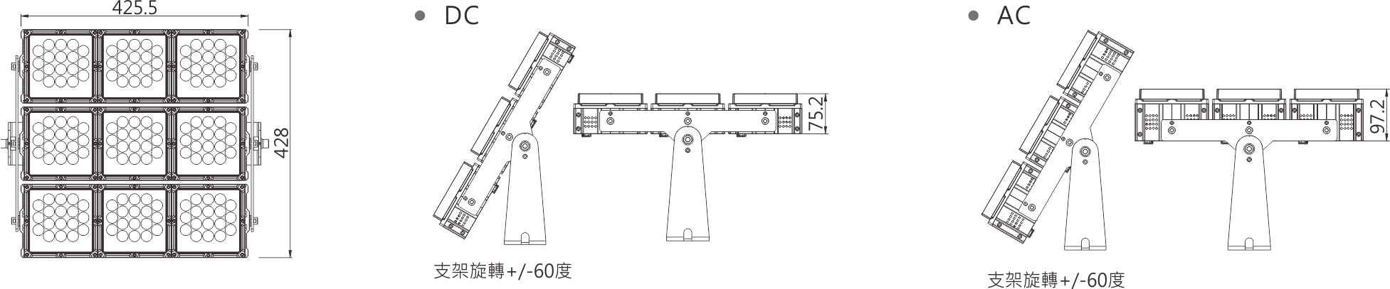 鋁合金結構,雙向對流散熱設計,具有良好的散熱性能。