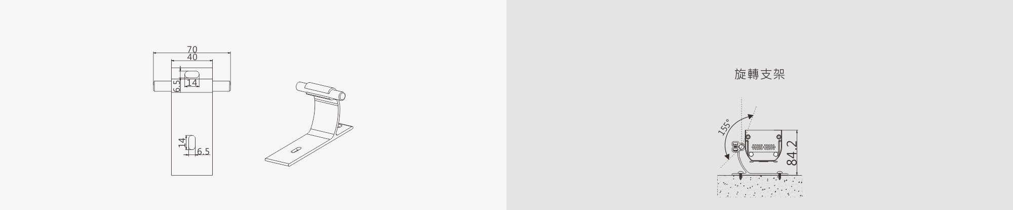 可旋轉式安裝底座可在水平方向旋轉90°,方便調整投射角度。