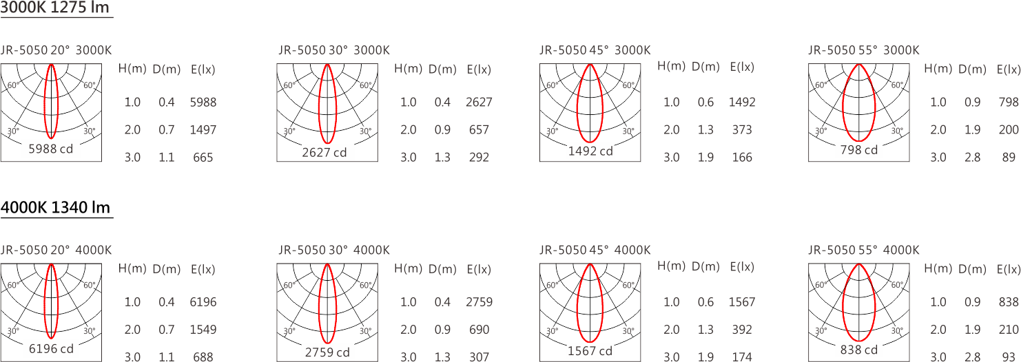 功率: 15W 電壓: AC220V 控制方式:ON/OFF 光色:W 燈數:4 光束角: 20°、30°、40°、55°