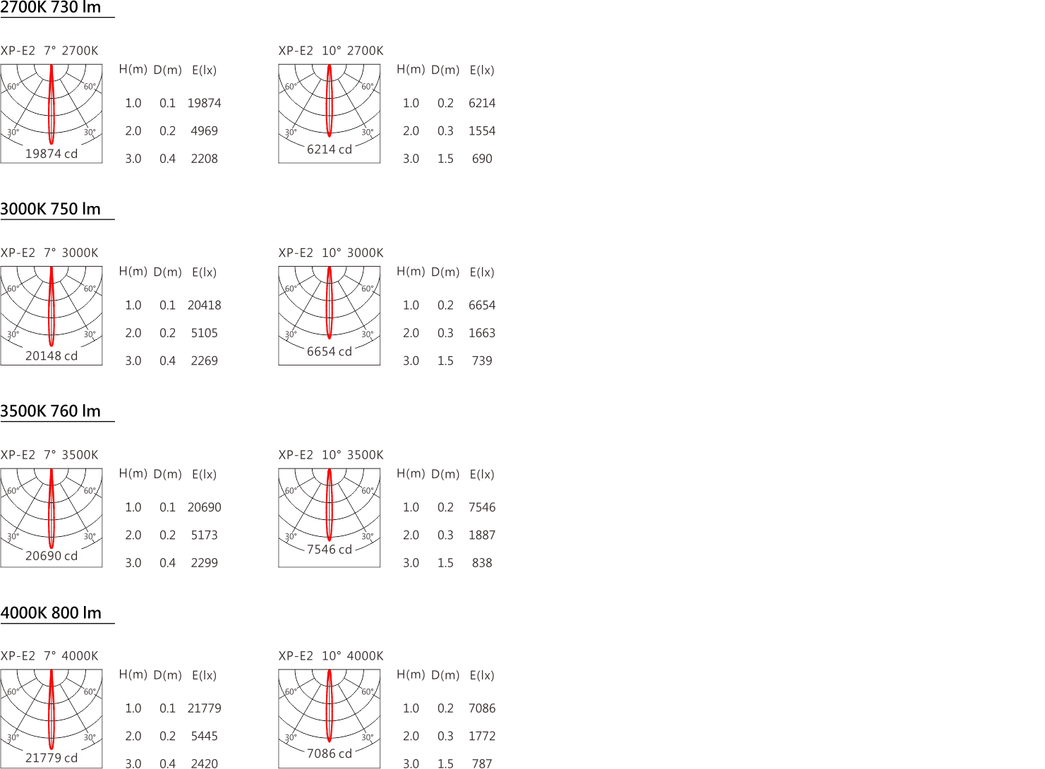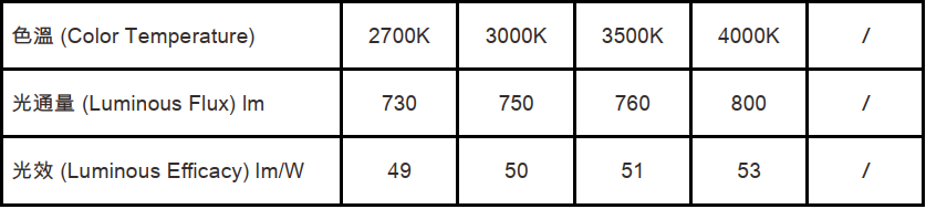 色溫(Color Temperature):2700K、3000K、3500K、4000K