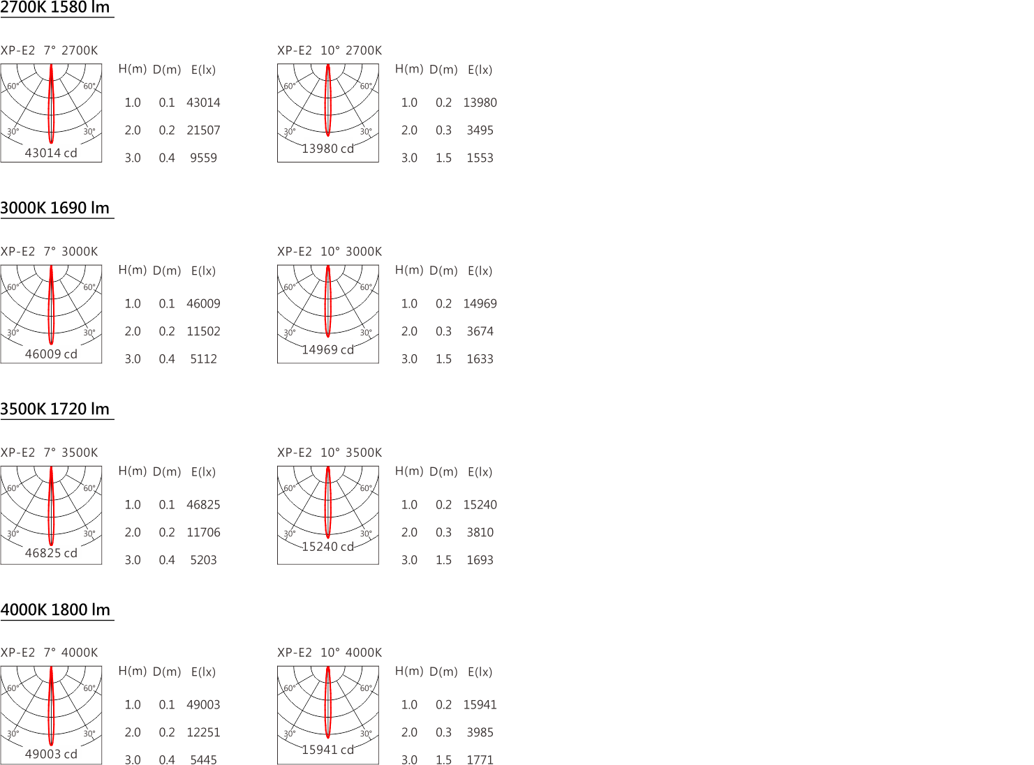 色溫(Color Temperature):2700K、3000K、3500K、4000K