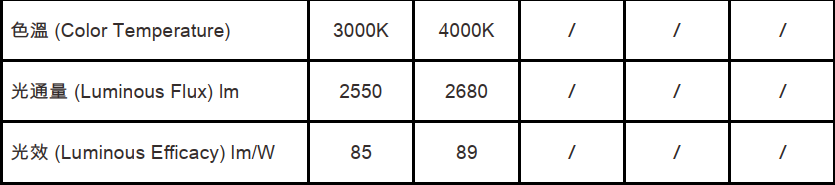 色溫(Color Temperature):3000K、4000K