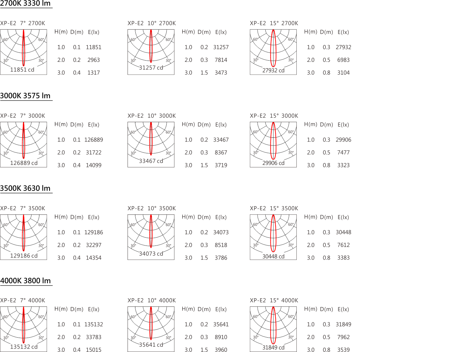 光束角(Beam Angle):7°、10°、15°