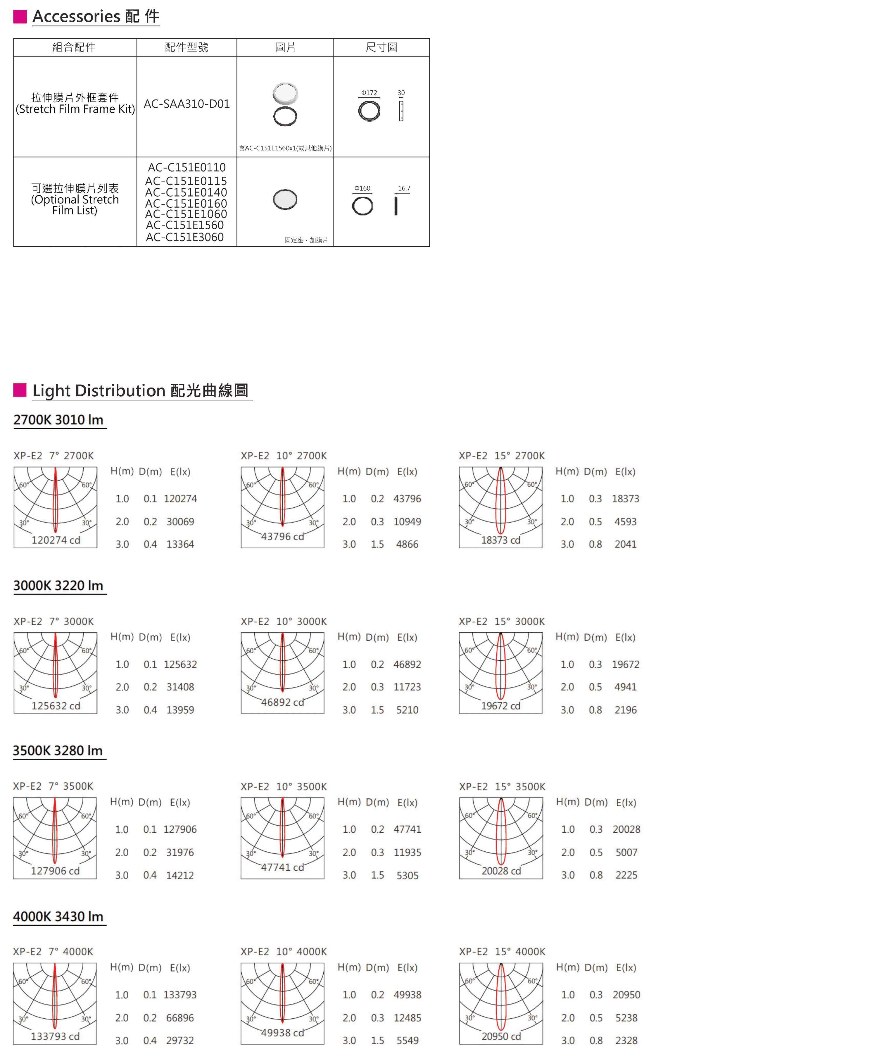 色溫(Color Temperature):2700K、3000K、3500K、4000K