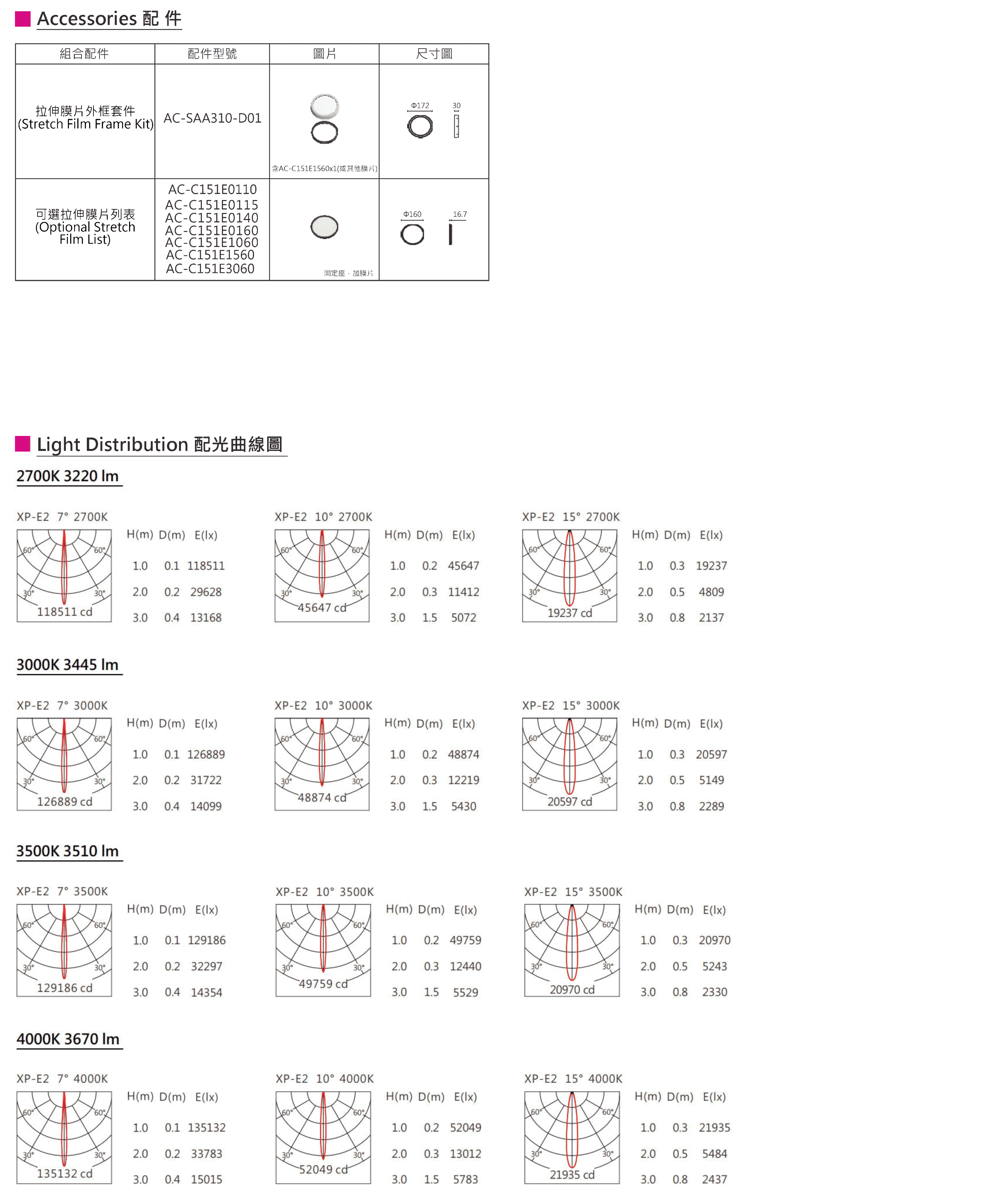 色溫(Color Temperature):2700K、3000K、3500K、4000K