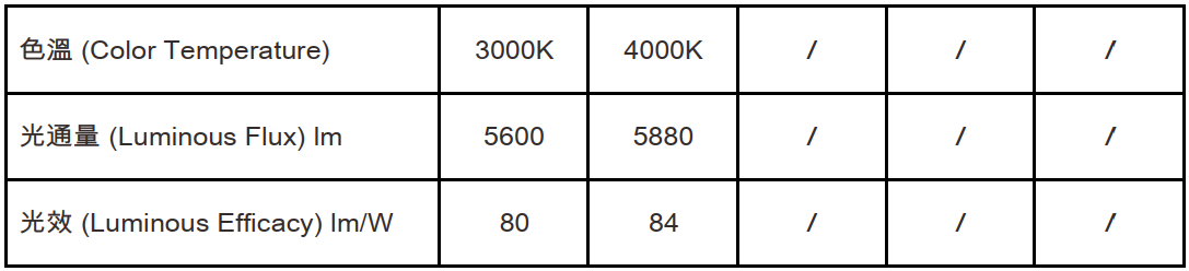 色溫(Color Temperature):3000K、4000K