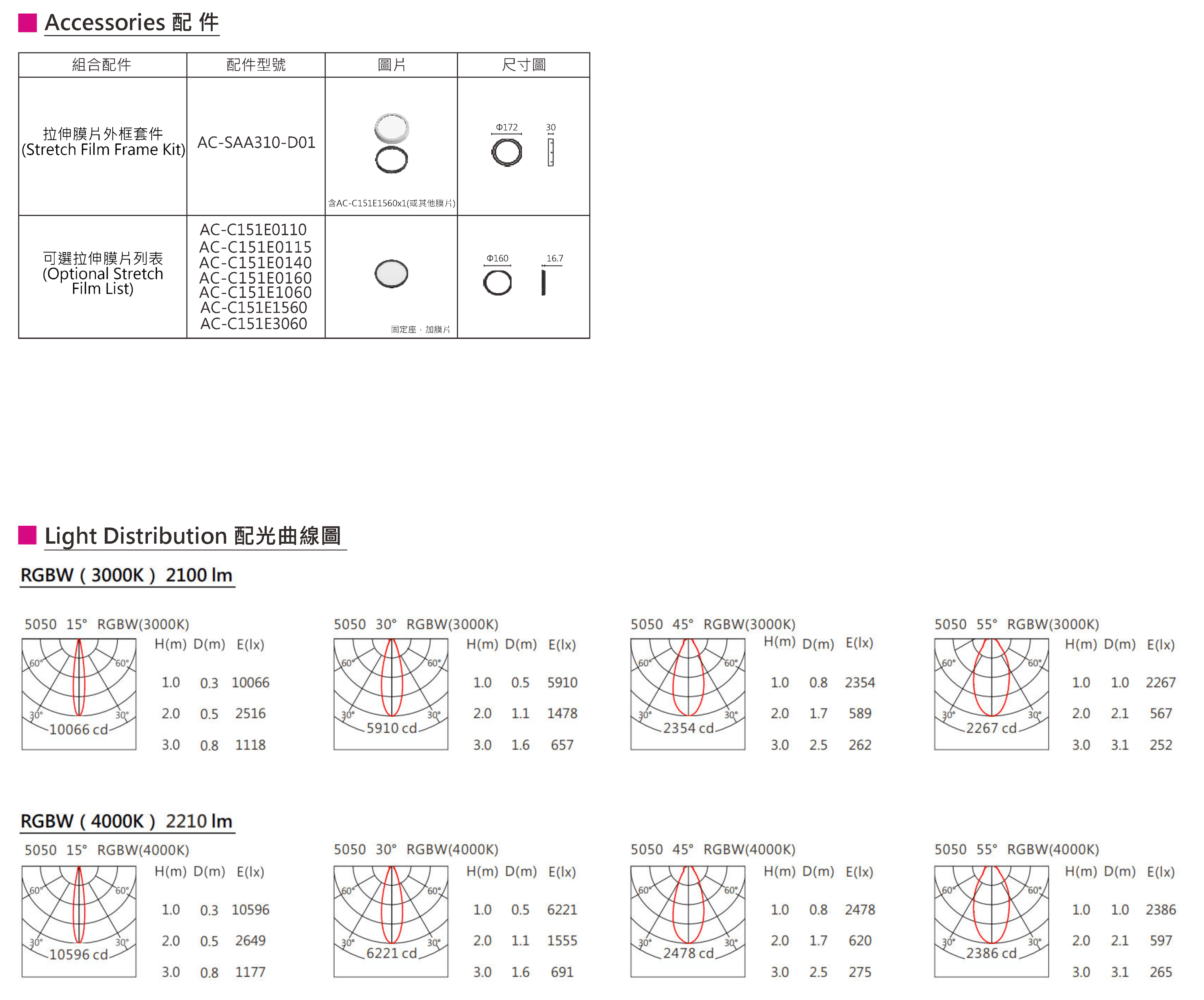 色溫(Color Temperature):RGBW(W:3000K、4000K)