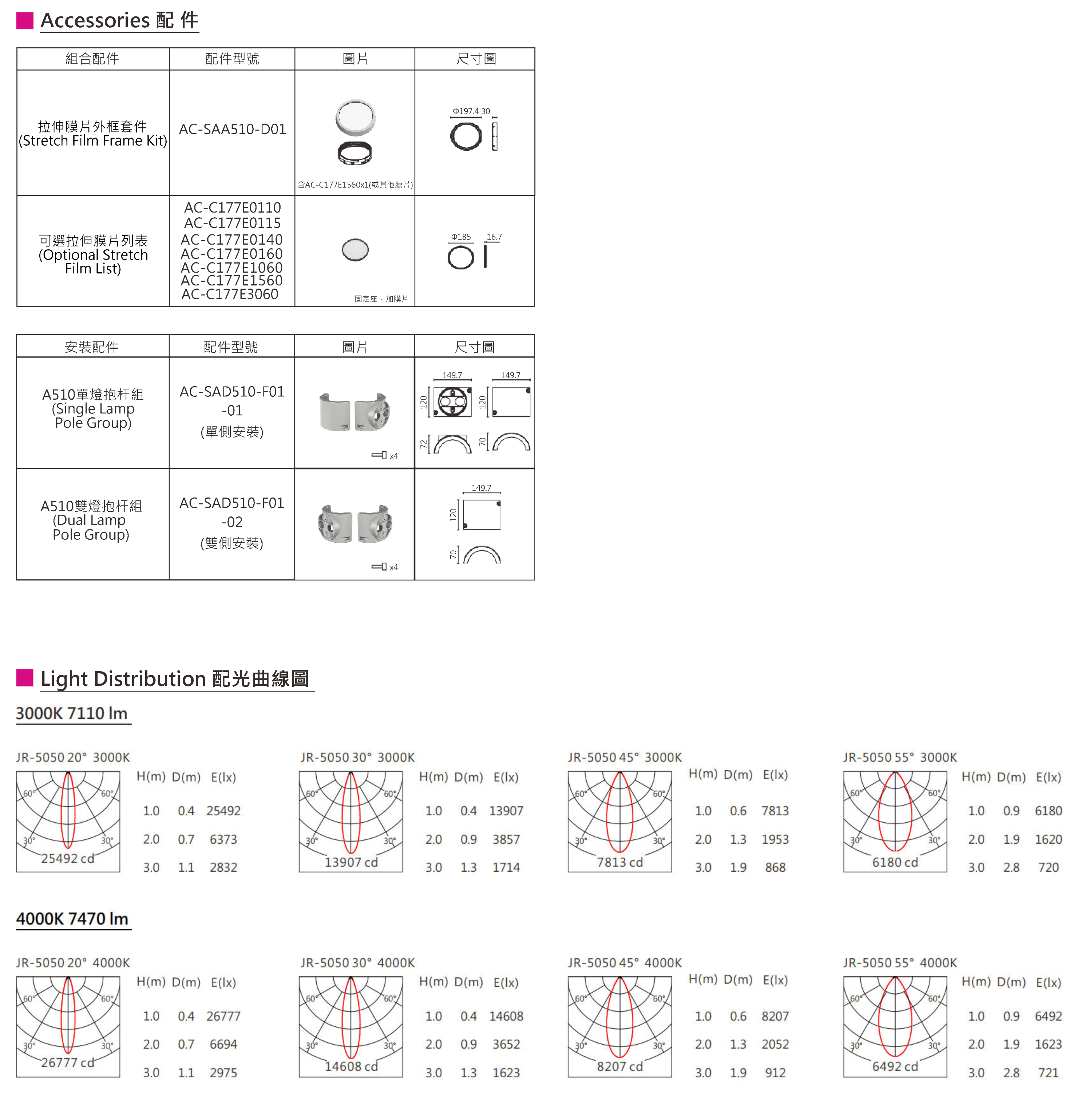 光束角(Beam Angle):20°、30°、45°、55°