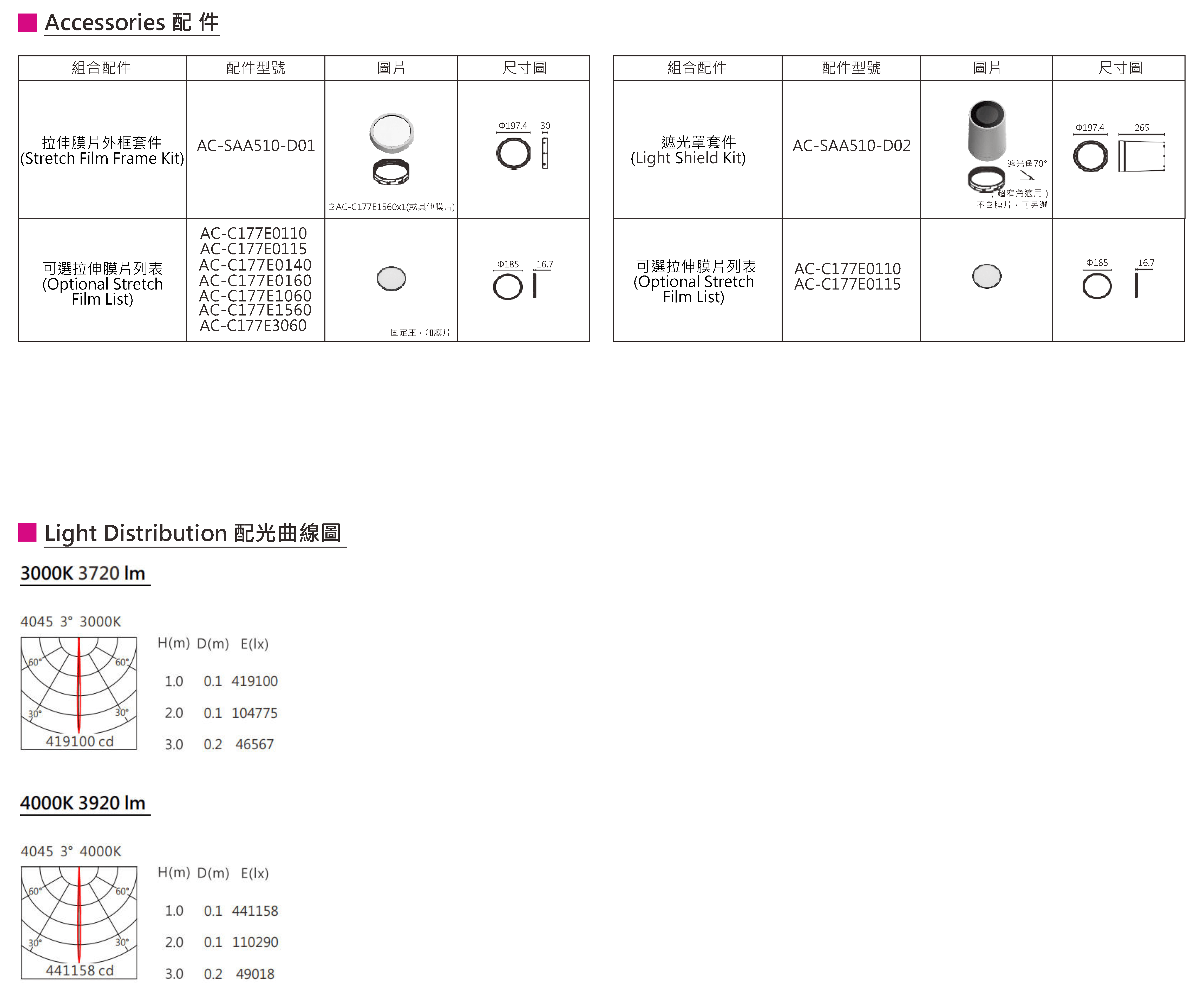 色溫(Color Temperature):3000K、4000K