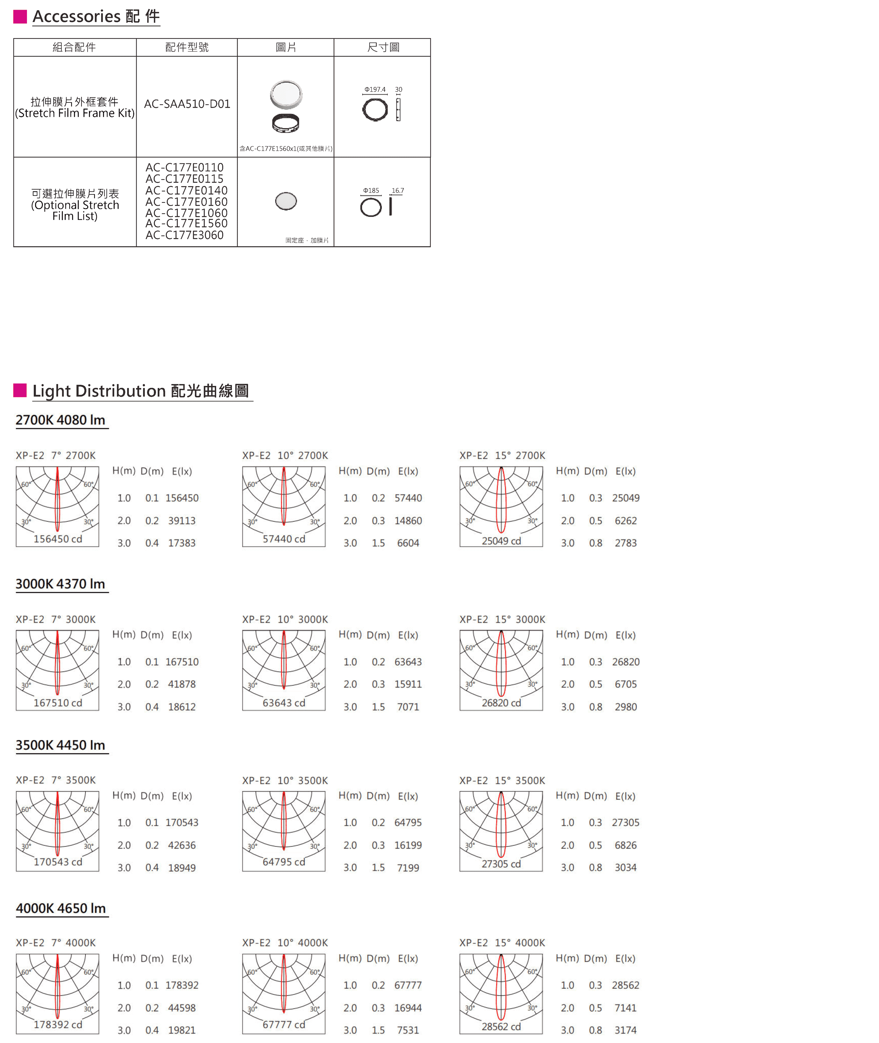 色溫(Color Temperature):2700K、3000K、3500K、4000K