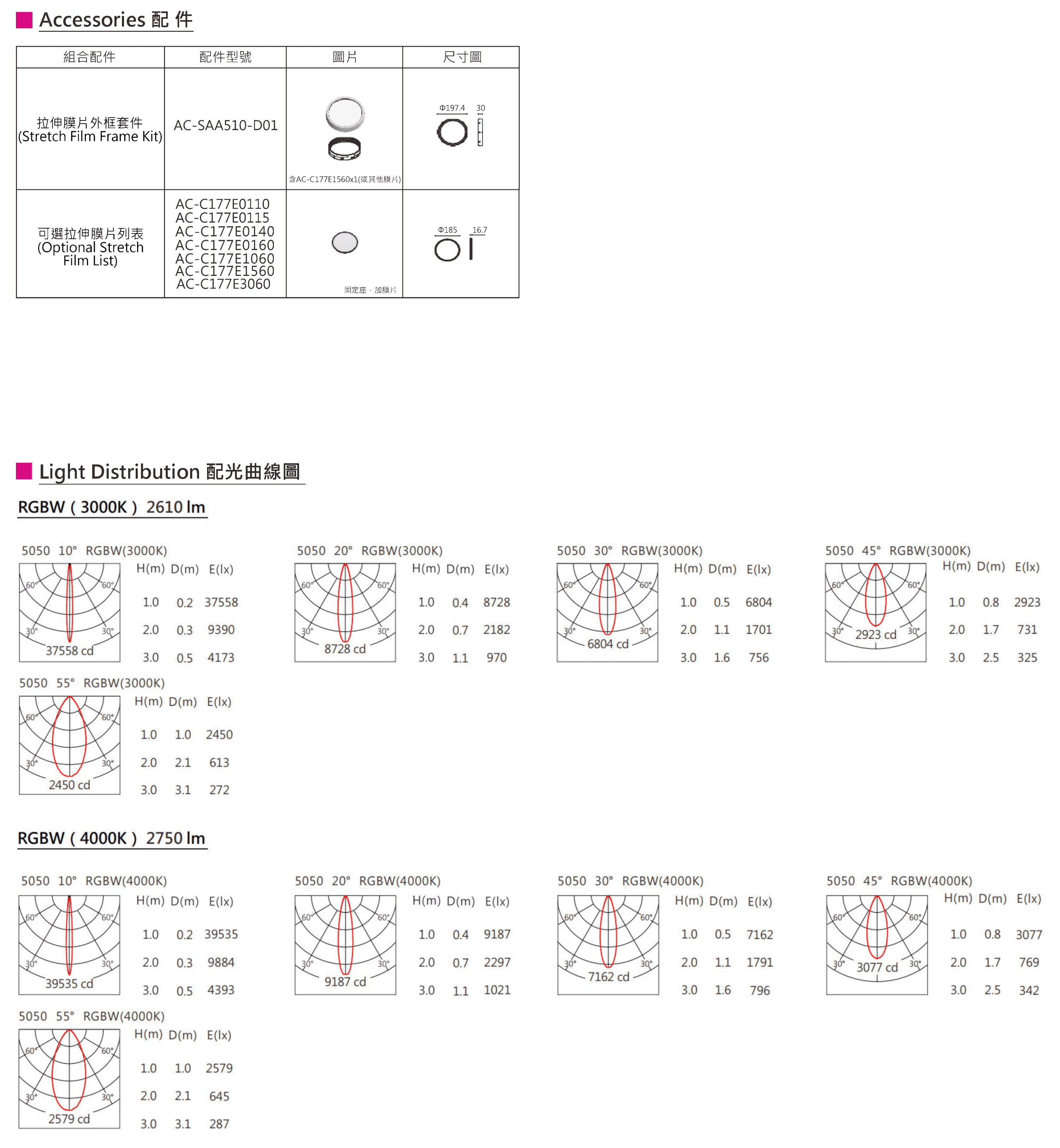 色溫(Color Temperature):RGBW(W:3000K、4000K)