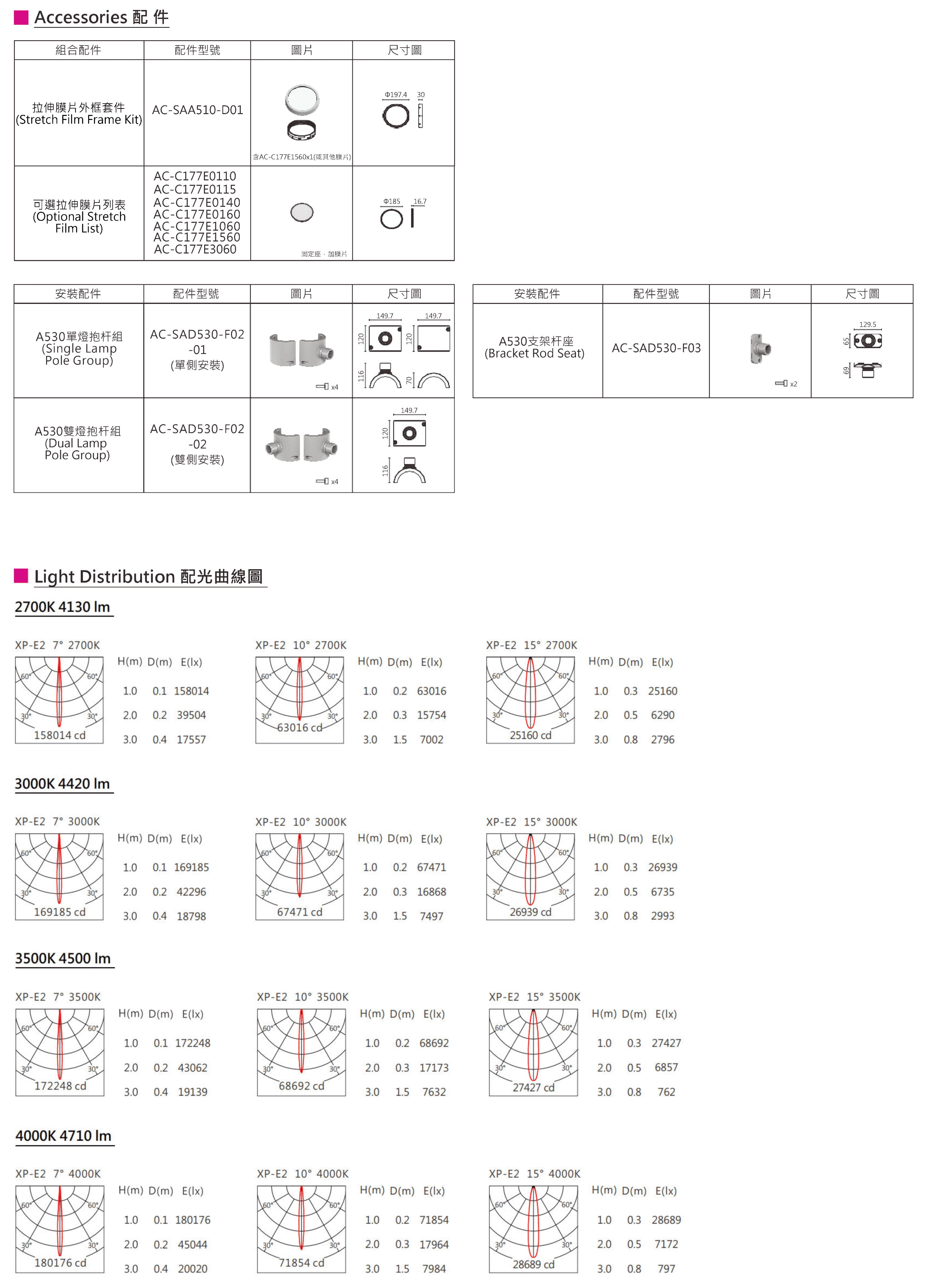 色溫(Color Temperature):2700K、3000K、3500K、4000K