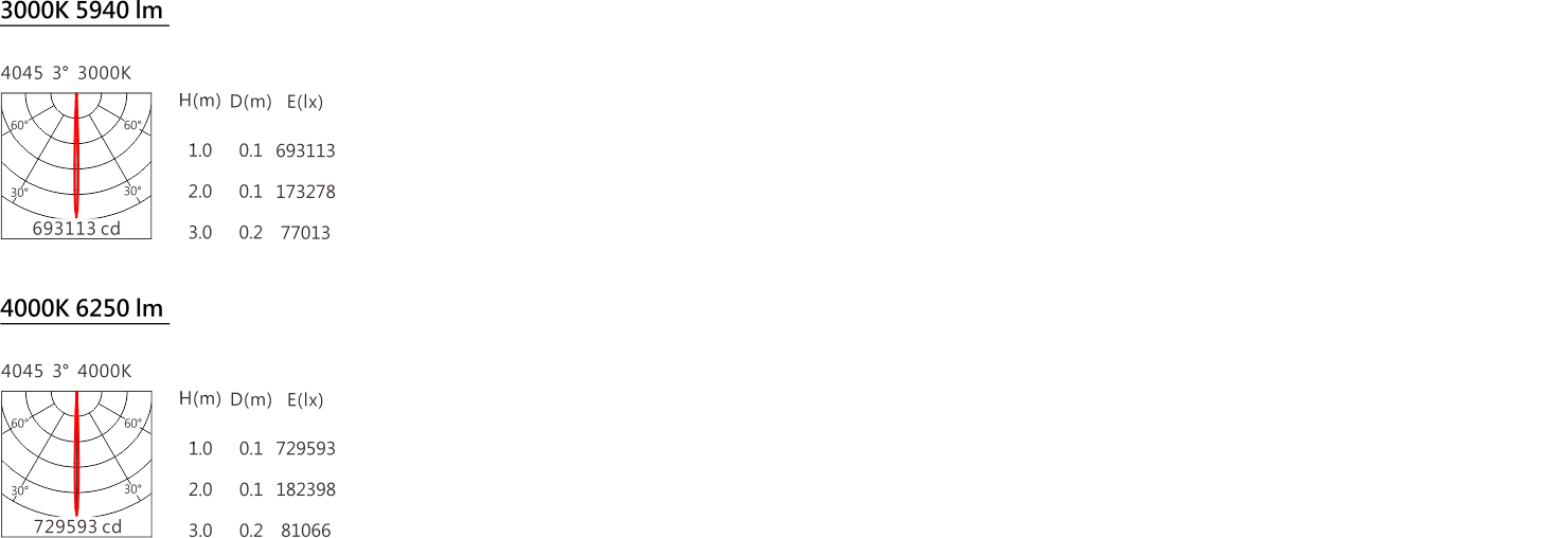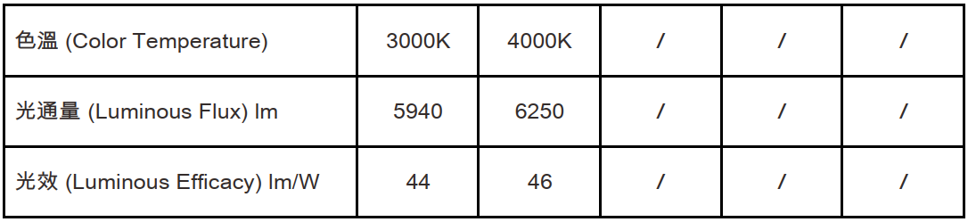 色溫(Color Temperature):3000K、4000K