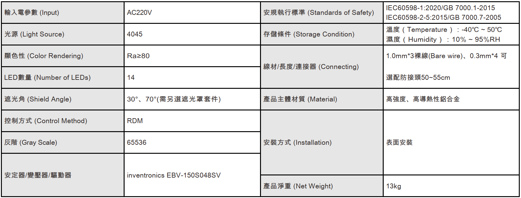 功率: 150W 電壓: AC220V 控制方式:RDM 光色:W 燈數:14 光束角:3°
