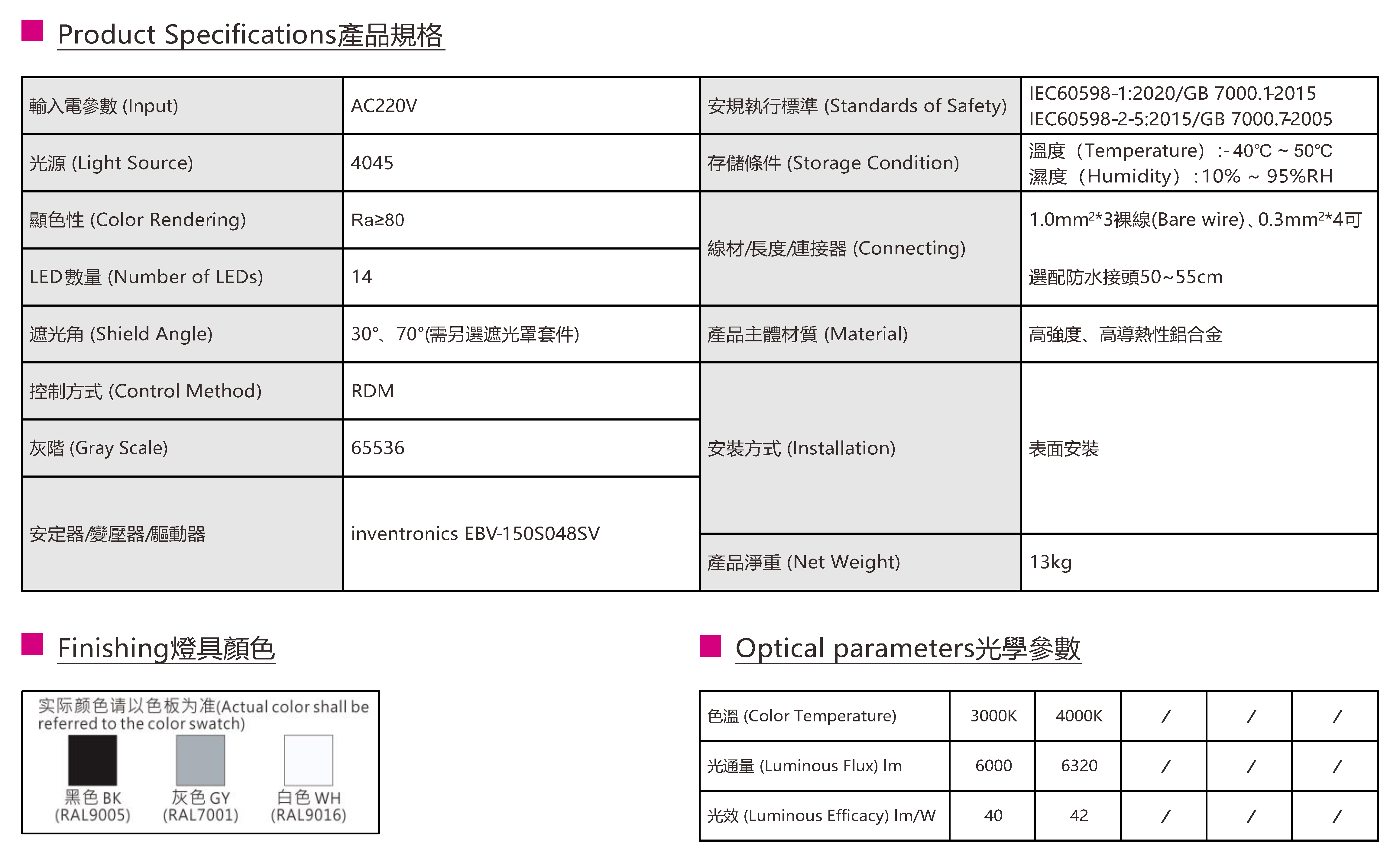 內建防反接保護和防浪湧保護電路,有效防施現場和使中出現的燈具損害