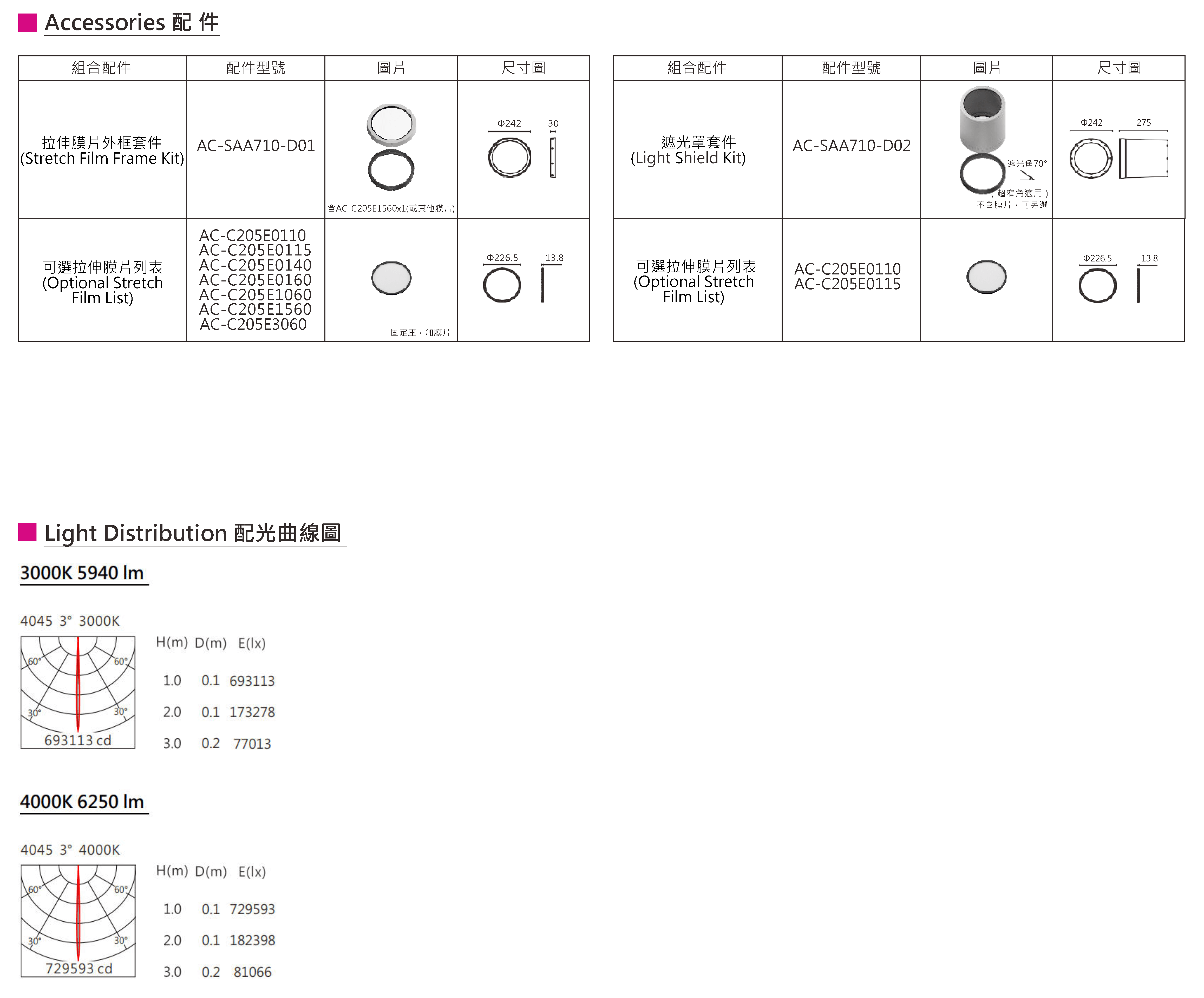 色溫(Color Temperature):3000K、4000K