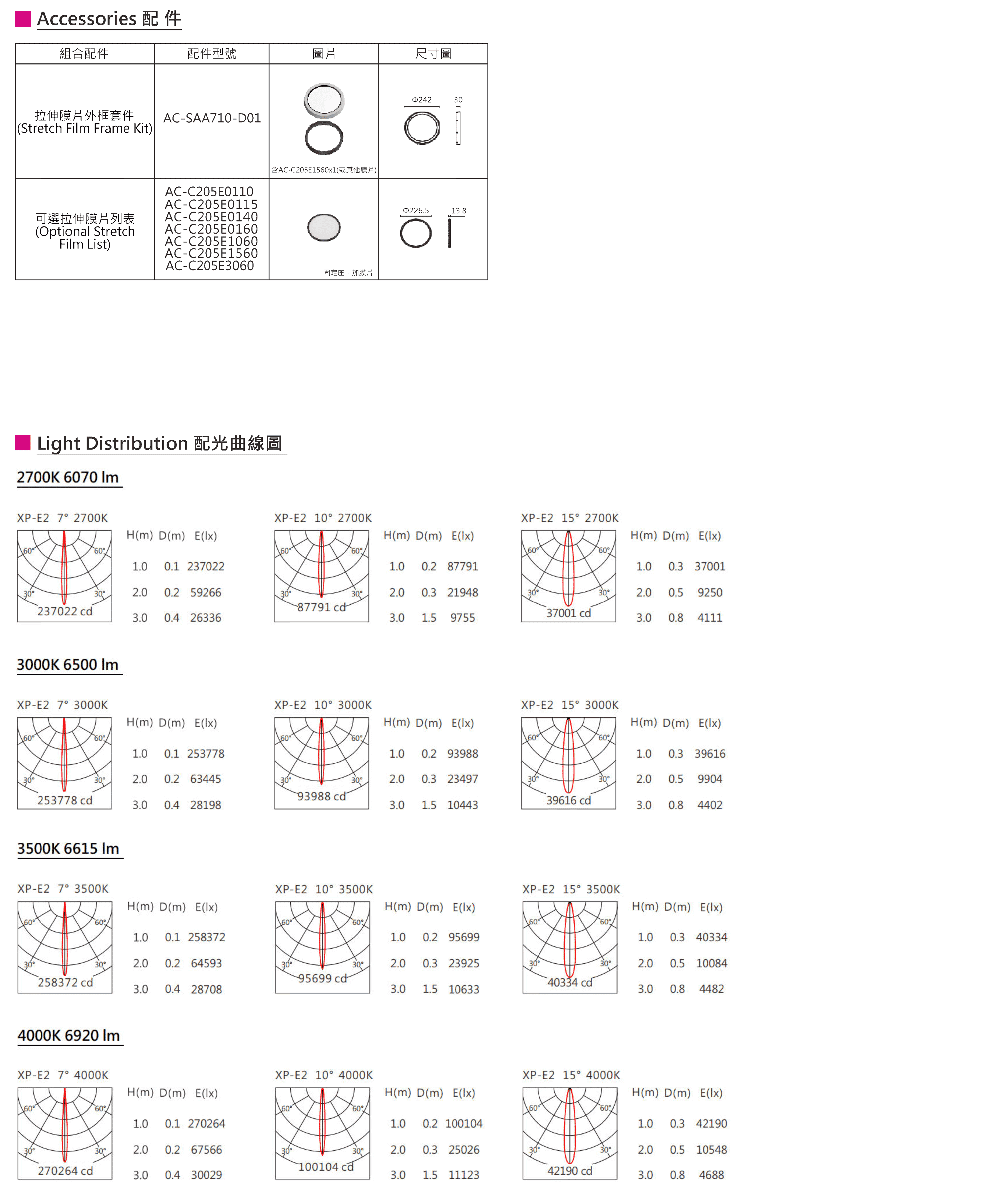 色溫(Color Temperature):2700K、3000K、3500K、4000K