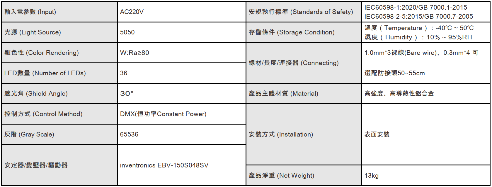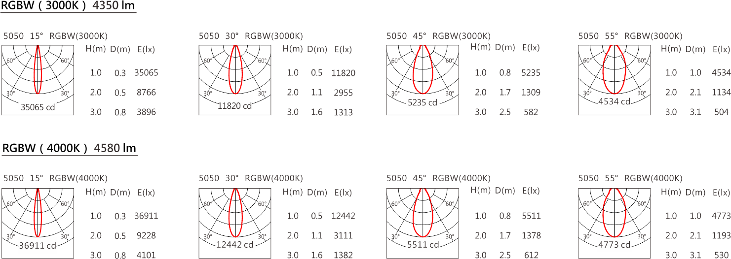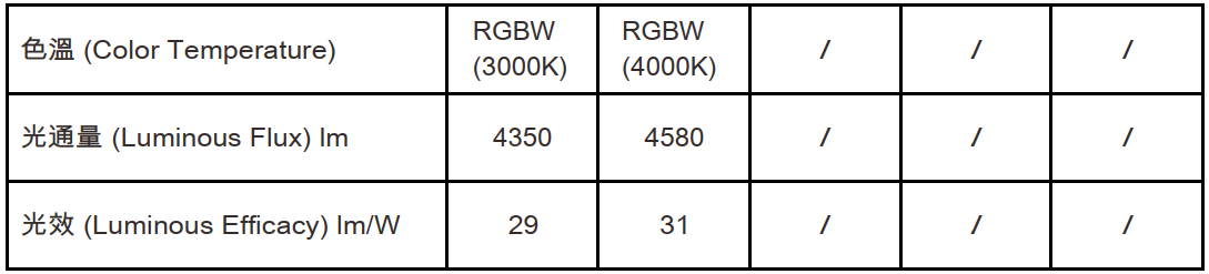 色溫(Color Temperature):RGBW(W:3000K、4000K)