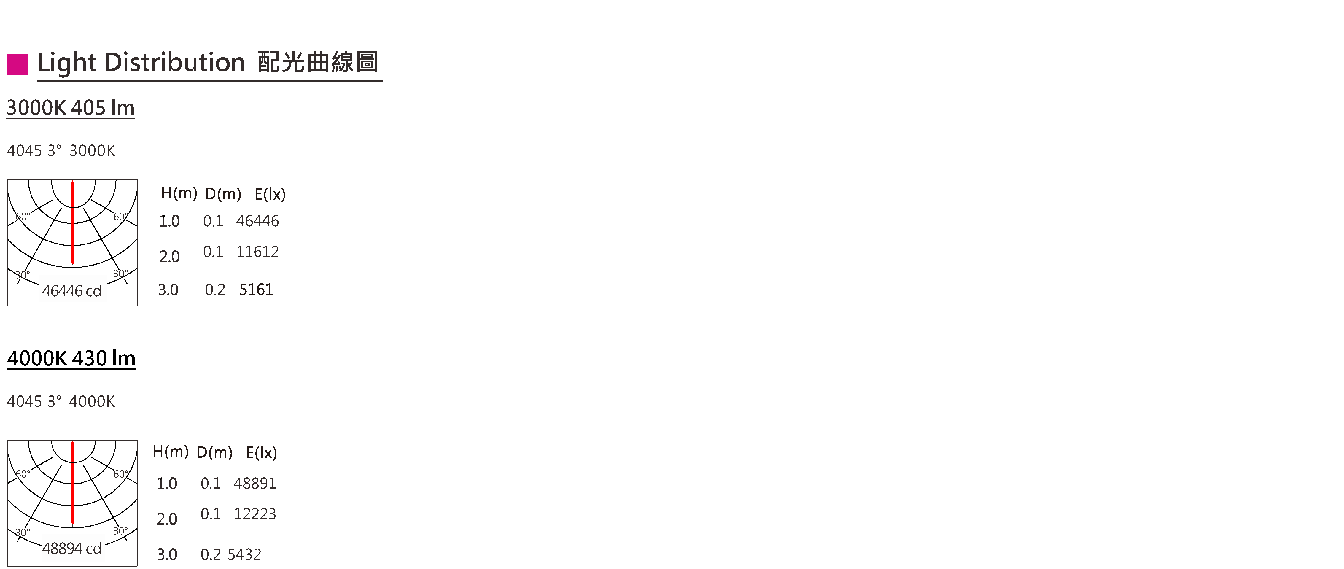 色溫(Color Temperature):3000K、4000K