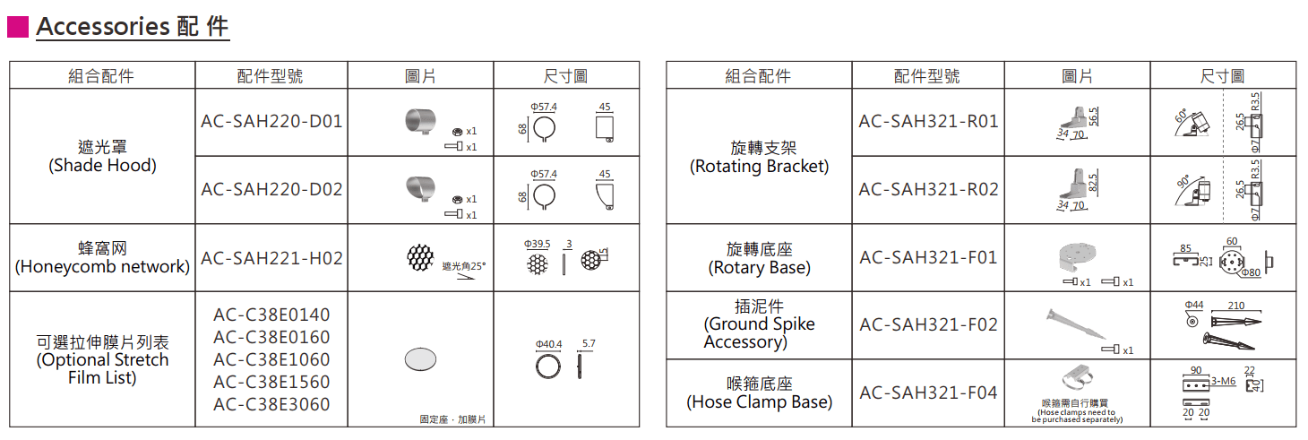 光形左右對稱,采⽤了三次配光設計,多種投射⾓度及光學配件可供選