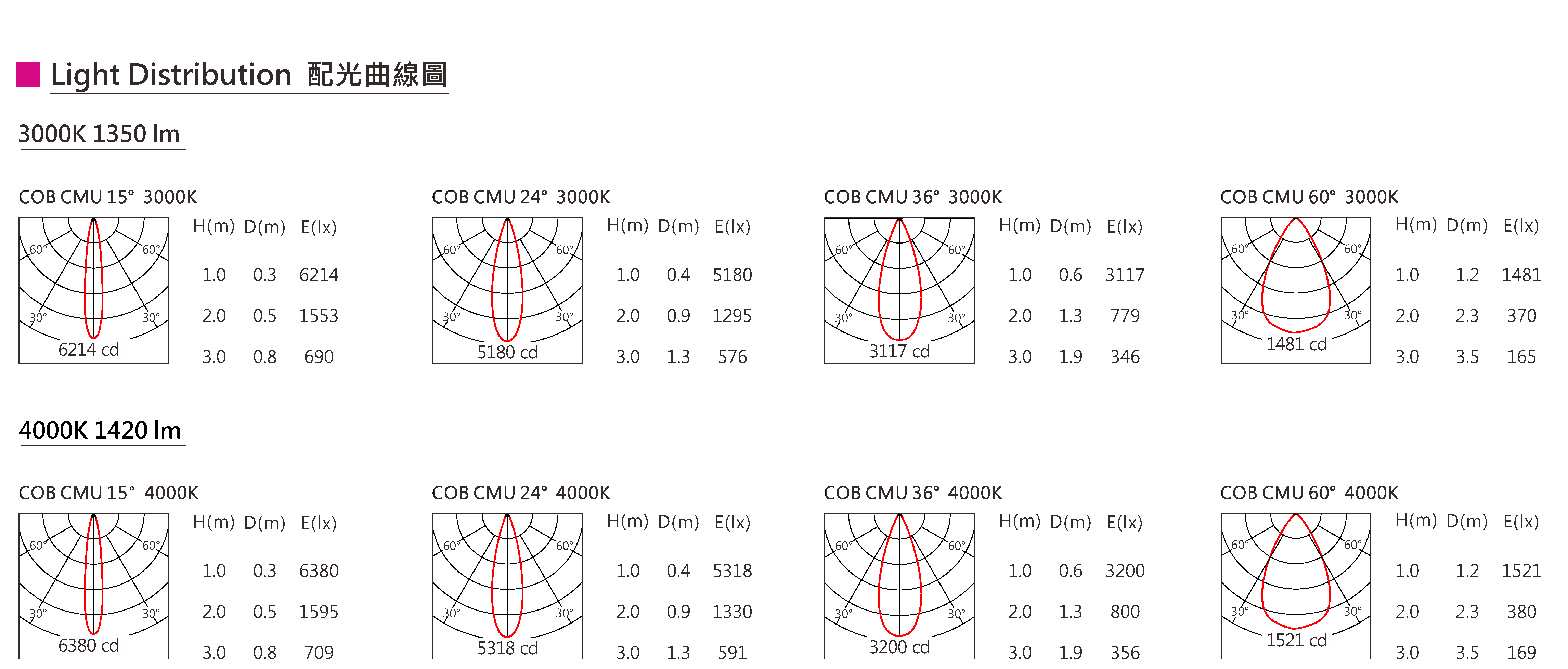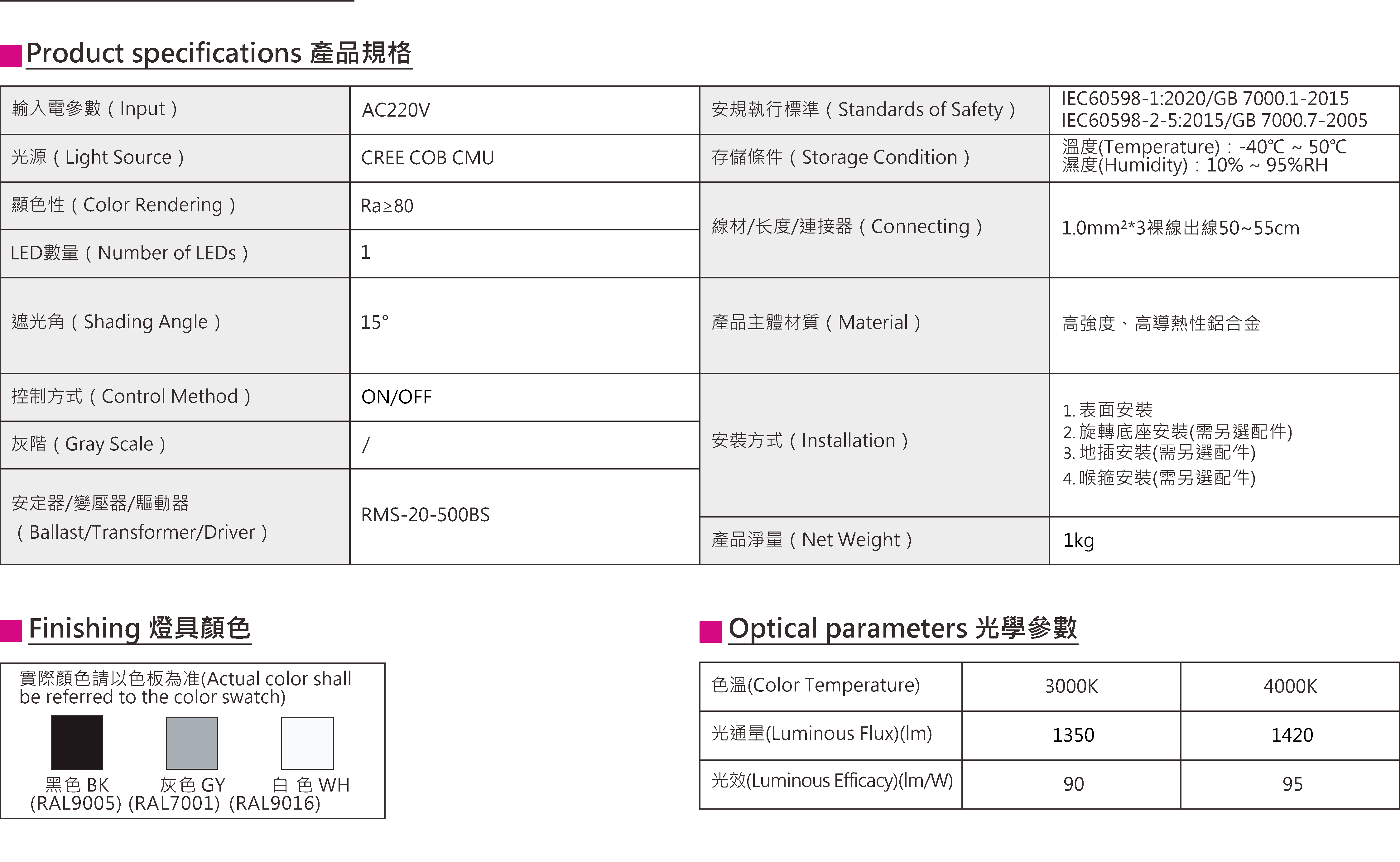 功率:15W 電壓: AC220V 控制方式:ON/OFF 光色:W 燈數:1 光束角:15°/24°/36°/60°