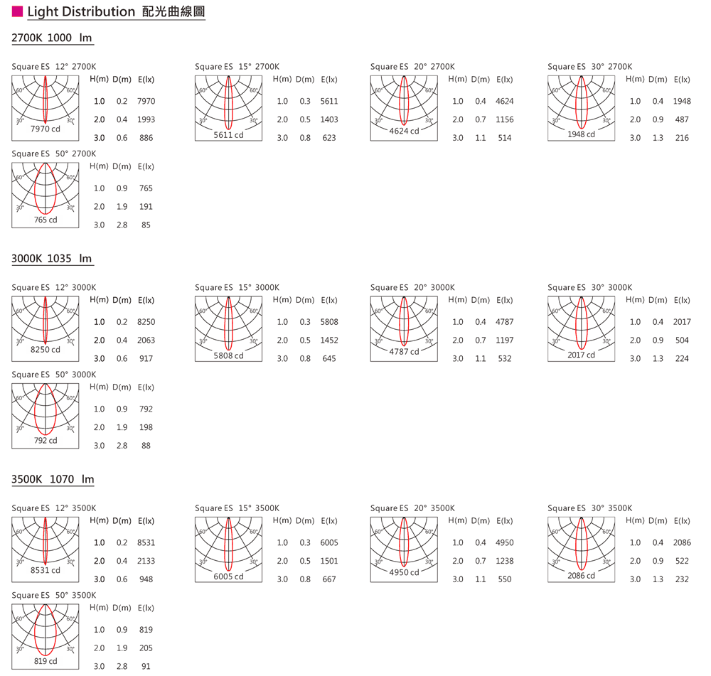 色溫(Color Temperature):2700K、3000K、3500K、4000K、5000K、5700K、6500K