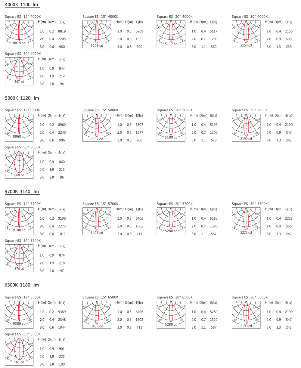 光束角(Beam Angle):12°/15°/20°/30°/50°
