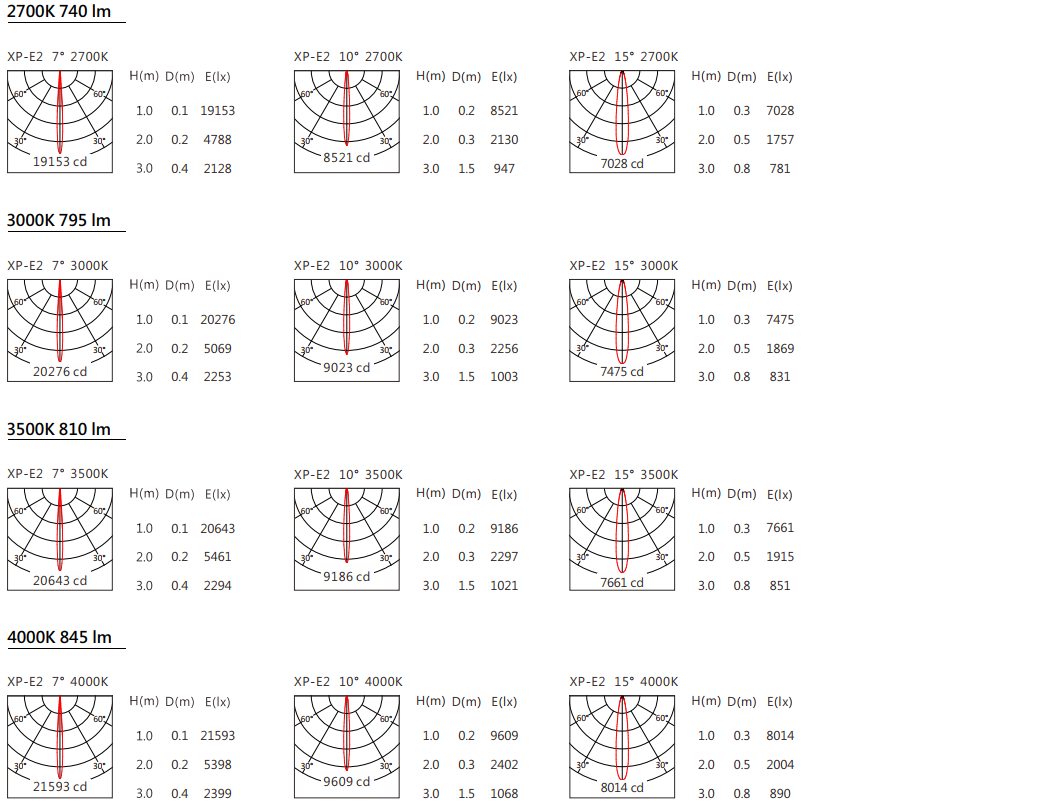 色溫(Color Temperature):2700K、3000K、3500K、4000K