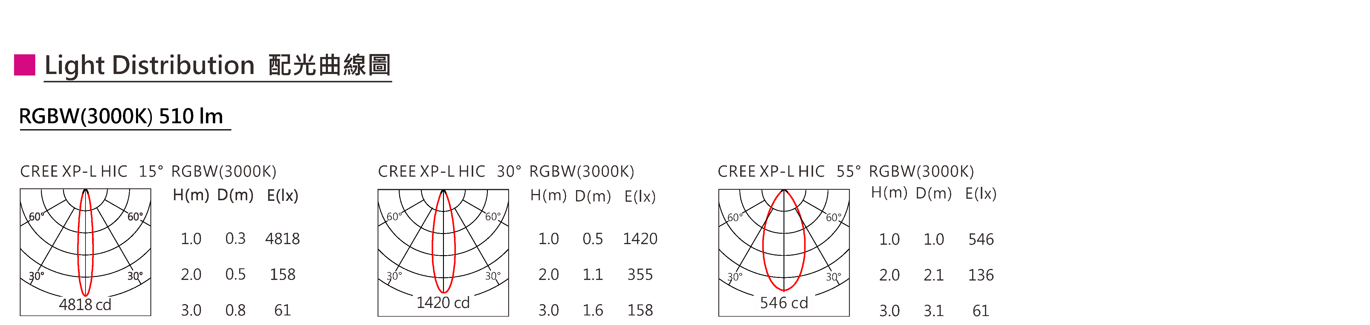 光束角(Beam Angle):12°/30°/55°