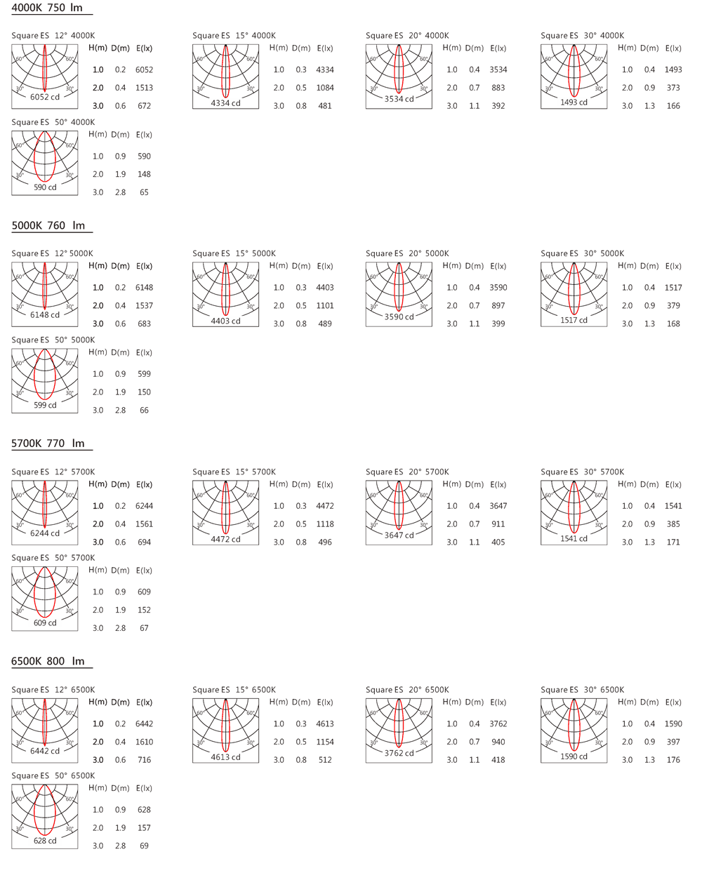 光束角(Beam Angle):12°/15°/20°/30°/50°