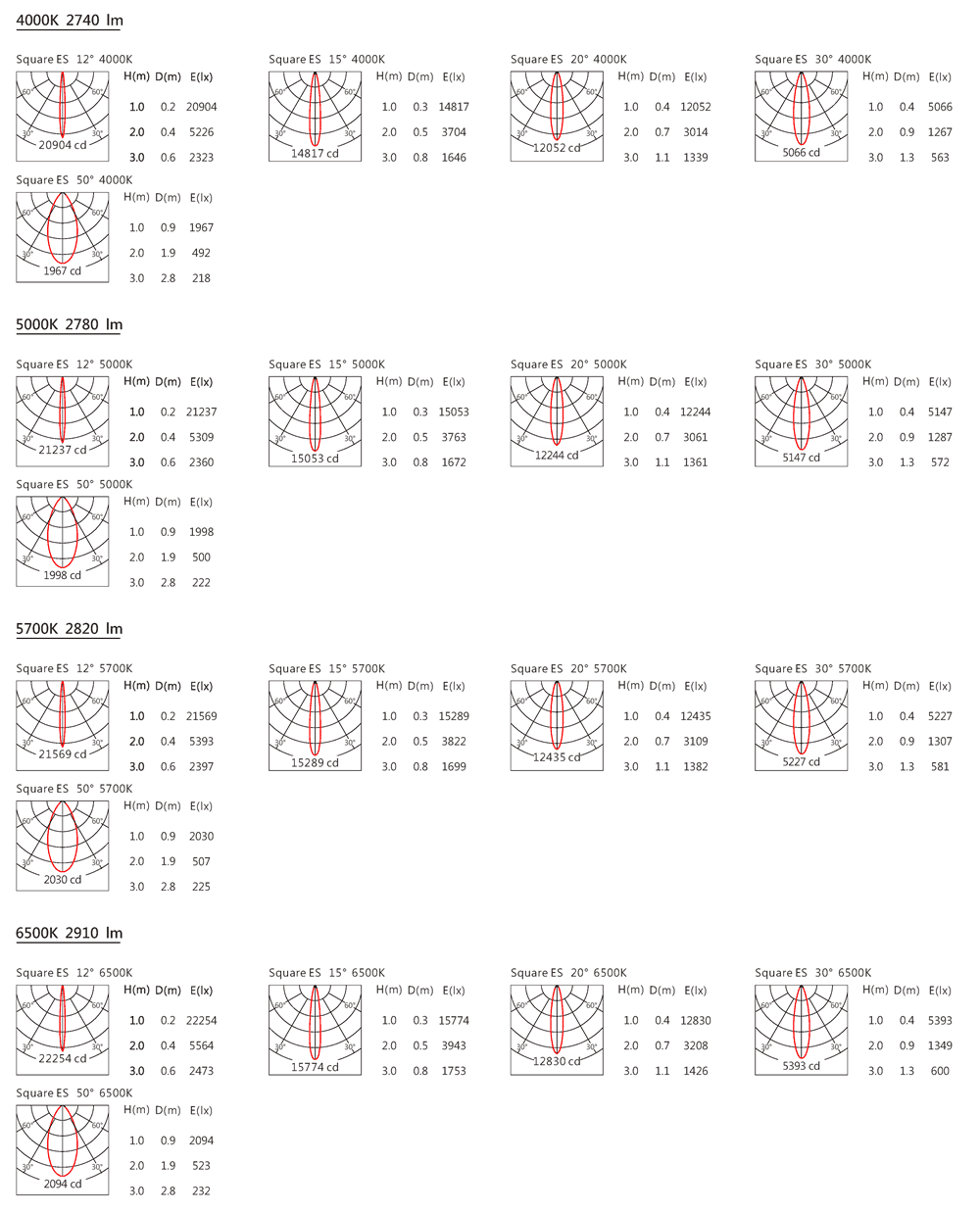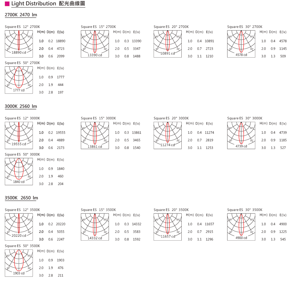 光束角(Beam Angle):12°/15°/20°/30°/50°