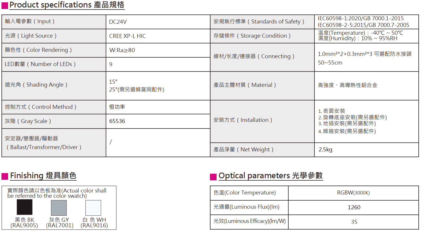 色溫(Color Temperature):RGBW(3000K)